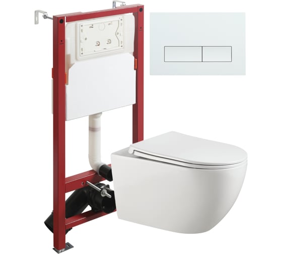 Унитаз подвесной безободковый Agger TORNADO белый с инсталляцией, микролифт, кнопка смыва белая ATI12150+APB288