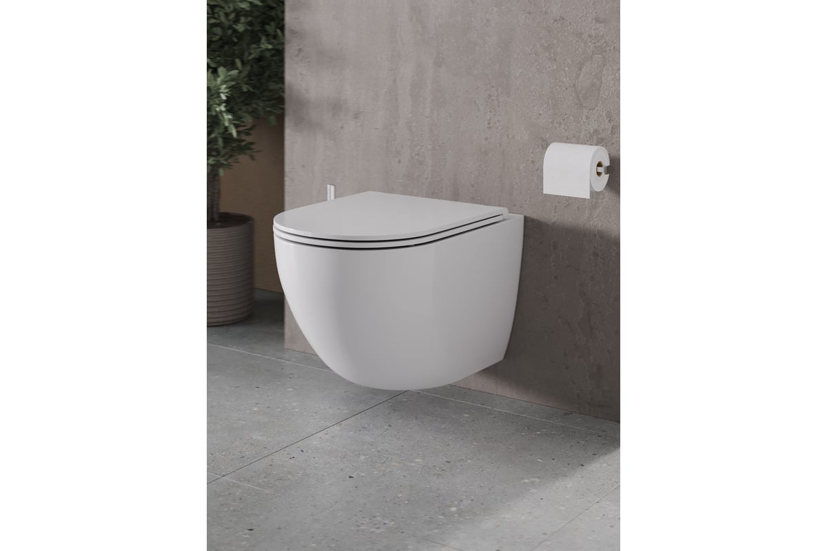 В комплекте быстросъемная крышка-сиденье с функцией плавного закрывания Soft-close, сиденье изготовлено из прочного материала - дюропласта, петли крышки-сиденья из нержавеющей стали. Скрытая система монтажа, цвет глянцевый белый.