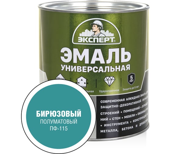 Универсальная алкидная эмаль Эксперт (полуматовая; бирюзовая; 2,5 кг) 31360 применяется для защитно-декоративного окрашивания металлических, кирпичных, деревянных, бетонных и других минеральных поверхностей. Используют для обработки дверей, рам, перил, наличников, плинтусов, оград, конструкций и механизмов. Средство служит для внутренних и наружных работ.