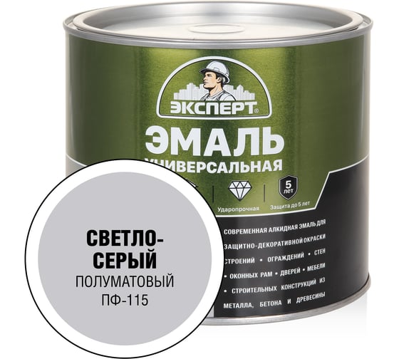 Универсальная алкидная эмаль Эксперт (полуматовая; светло-серая; 1,8 кг) 31354 применяется для защитно-декоративного окрашивания металлических, кирпичных, деревянных, бетонных и других минеральных поверхностей. Используют для обработки дверей, рам, перил, наличников, плинтусов, оград, конструкций и механизмов. Средство служит для внутренних и наружных работ.