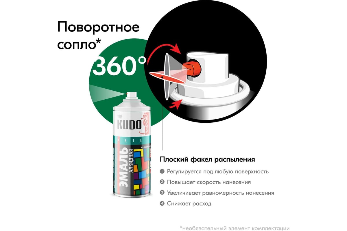 Имеет высокую твердость, светостойкость и стойкость к растворителям. Благодаря распылительной головке с поворотным соплом, обеспечивающим профессиональный факел распыления, достигается высокая скорость нанесения эмали при максимальном удобстве окрашивания. Применяется для наружных и внутренних работ.