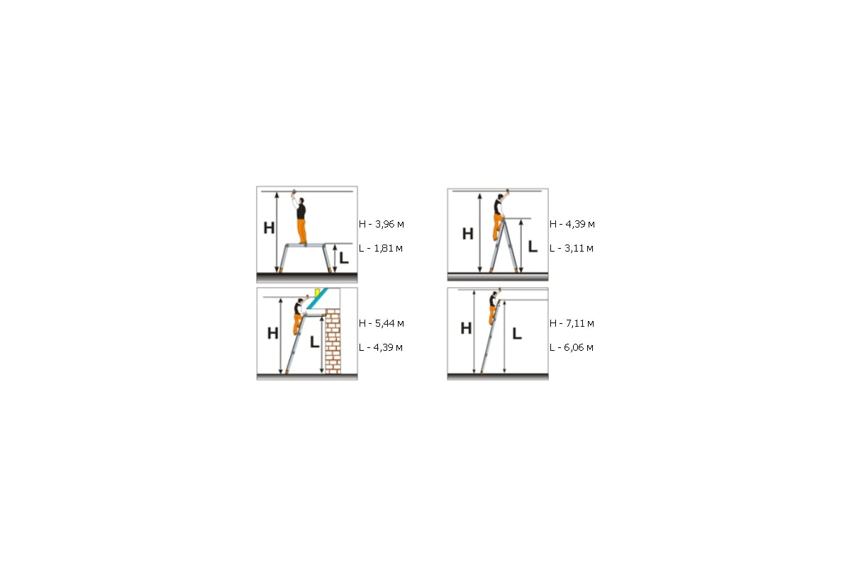 - Рабочая высота, в зависимости от выбранной трансформации, колеблется от 3.96 м до 7.11 м;
