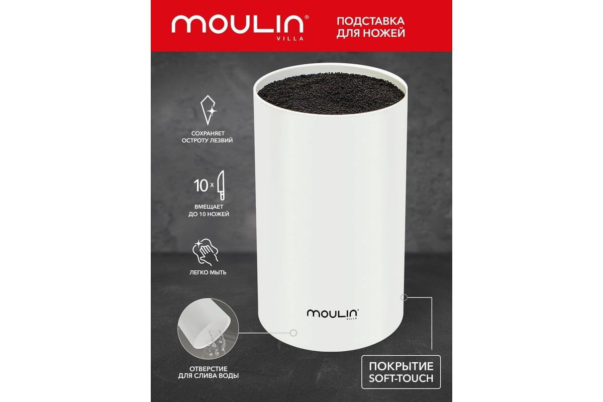 Универсальная подставка для ножей Moulinvilla пластиковая, белая STN-1W