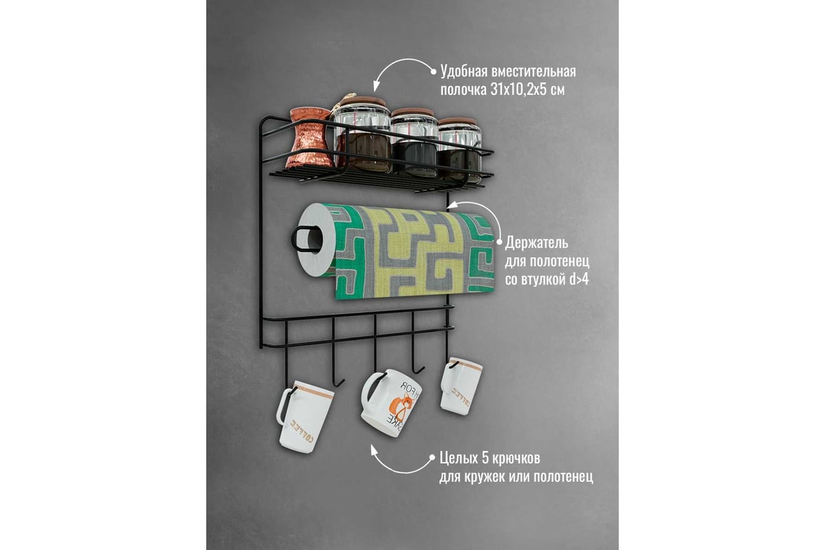 Универсальная навесная полка-органайзер для кухни решает сразу 3 задачи: