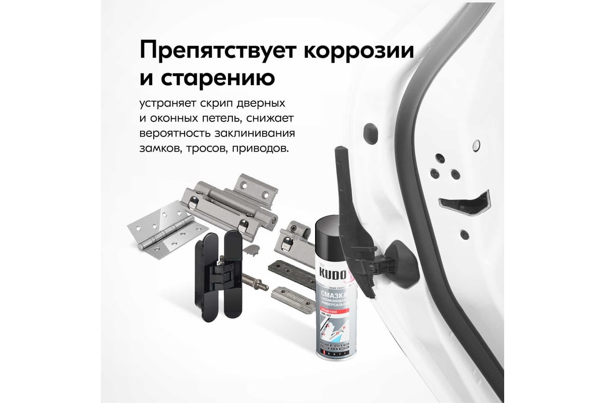 Выбор остановил на KUDO. Объем большой баллона. Пользуюсь постоянно: после оттепели, после мойки, после снега. Уплотнители и личинки замков дверей. Уже обработал пять дверей по кругу 6 раз, и периодически обрабатываю ремень генератора. Еще на два раза точно осталось. В морозы после обработки ни разу не подвел, и по нанесению количество не жалел. Удобный короткий нос-трубочка распылителя, обычно в комплекте постоянно теряется. Буду еще покупать.