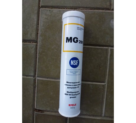 Универсальная смазка с пищевым допуском EFELE MG-291 очень хорошего качества. Использую для смазки винтовой пары пресса выжимки сока фрукты, а также ягод. Нет запаха, обладает хорошей смазывающей способностью. Нейтральна к выжатому соку.