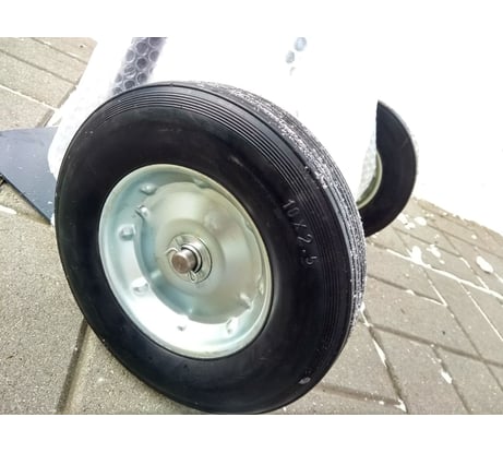 Большие пневматические колеса диаметром 260 мм и высотой шины 70 мм обеспечивают плавное перемещение тележки по рабочей площадке.