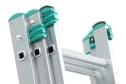 Универсальная трехсекционная лестница Alve 7614 применяется в четырех различных положениях: как обычная стремянка и стремянка с выдвижной секцией, как приставная и выдвижная лестница. Профили изделия изготовлены из высококачественного прессованного алюминия и усилены в местах с большей нагрузкой. Минимальный вес и объем конструкции в сложенном состояние облегчает транспортировку изделия.
