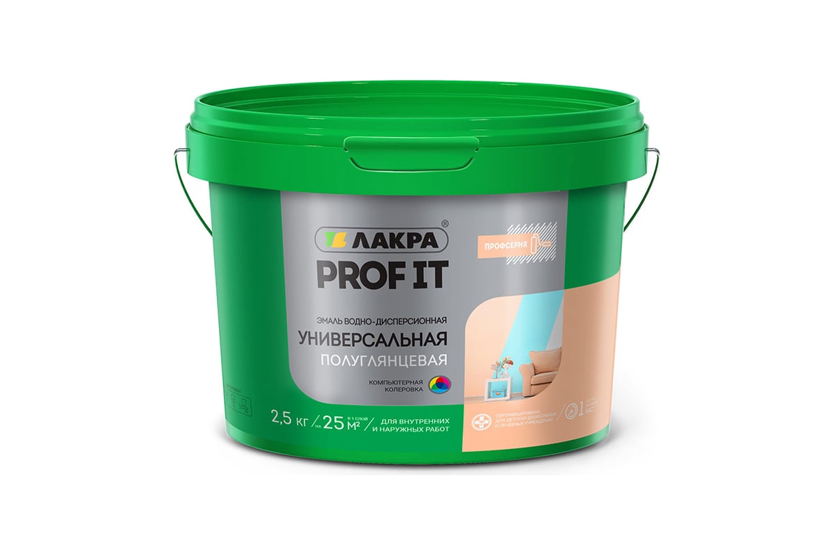 Универсальная водно-дисперсионная эмаль Лакра PROF IT полуглянцевая, база А, 2.5 кг Лк-00010494