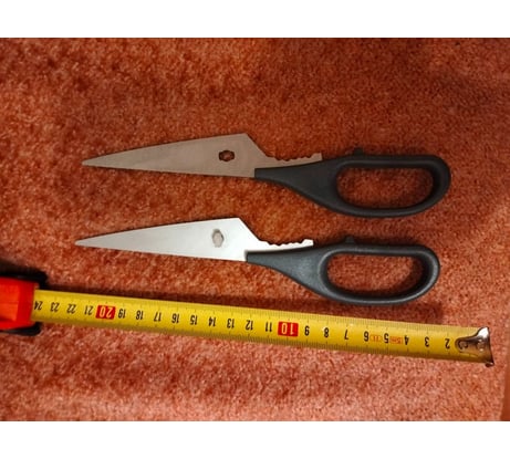 Взял эти ножницы на замену 20-и летним кухонным ножницам от "Tupperware". Ножницы универсальные (небольшие и немаленькие), подойдут как мужчинам, так и женщинам. Режут идеально (пока новые). Удобная разборная конструкция. Брал со скидкой за 559 руб. Однозначно рекомендую к покупке.