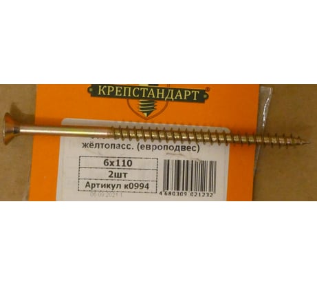 Отзывы об универсальных желтопассивированных саморезах Крепстандарт 6х110 мм 2 шт. желтый цинк к0994