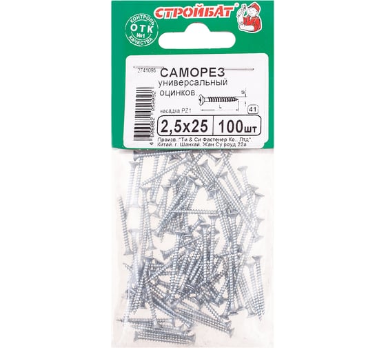 Сопутствующие товары для саморезов Стройбат 2,5x25 100 шт 305830