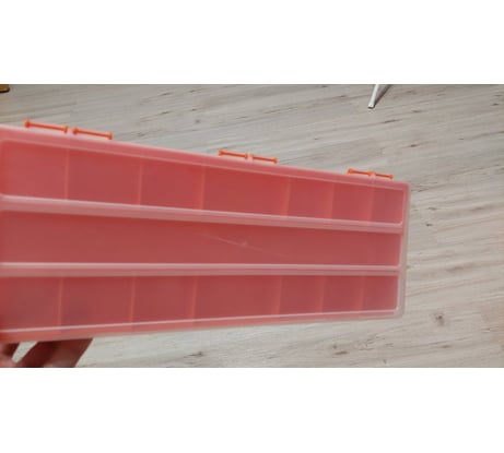 Хорошее качество пластика. Для метизов самое то. По середине длинная ячейка, можно положить отвëртки, длинные биты.