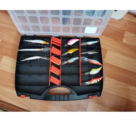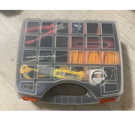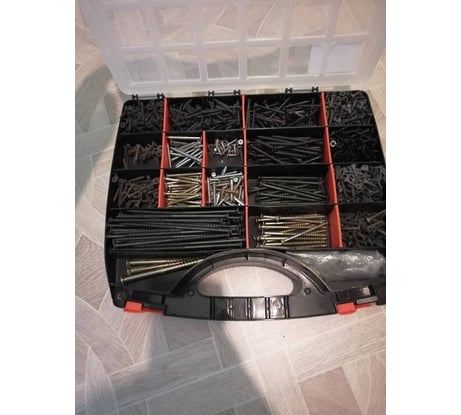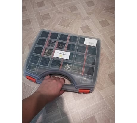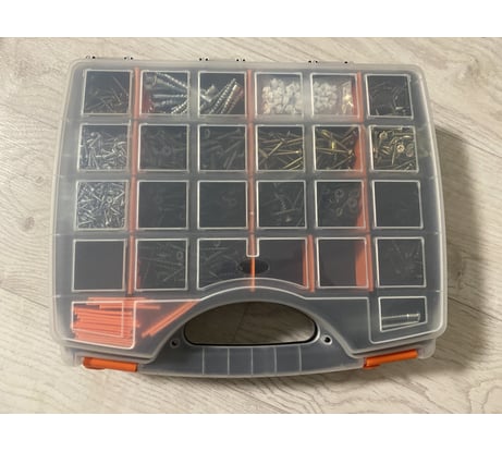 Вместительный двусторонний, регулируются отсеки для метизов, хорошо фиксируются защелки, не сломаются.
