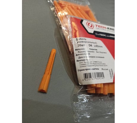 Отзывы об универсальном дюбеле Tech-Krep 6х52 20 шт. полипропилен пакет 102931