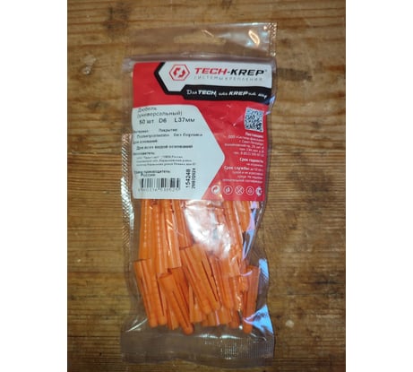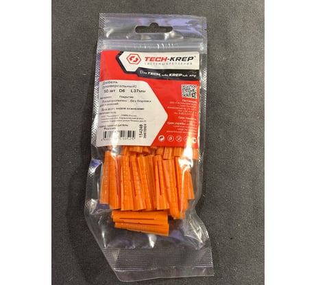 Универсальный дюбель Tech-Krep 6x37 мм, без бортика, 50 шт., пакет 154248