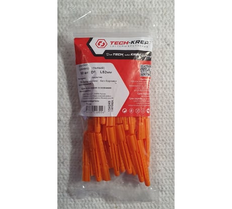 Универсальный дюбель Tech-Krep 6x52 мм, без бортика, 50 шт., пакет 15424955 ₽