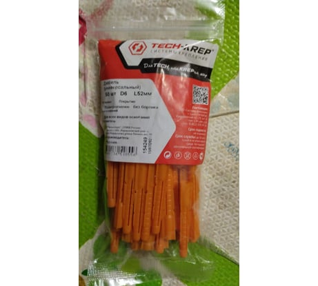 Отзывы об универсальном дюбеле Tech-Krep 6x52 мм, без бортика, 50 шт., пакет 154249