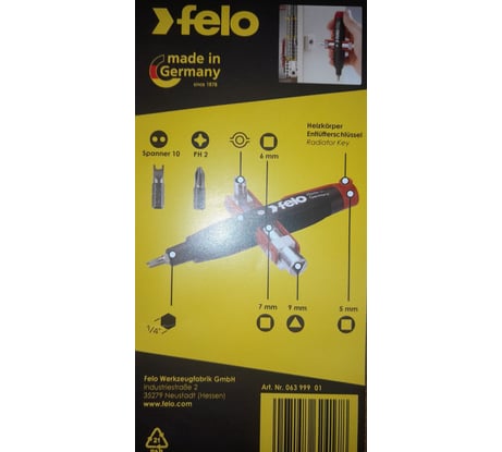 Универсальный ключ для ящиков Felo 06399901 — удобный ручной инструмент, который используется для открывания и закрывания специальных дверей, ящиков, щитов и прочего. Наличие универсальных насадок (вилка, треугольник, квадрат и других) расширяет сферу применения изделия.