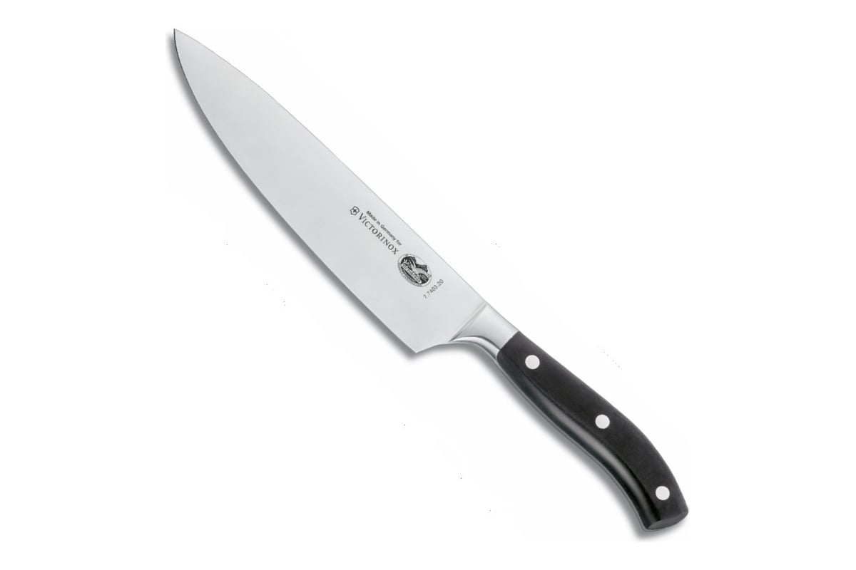 Универсальный кованый черный нож 20 см Victorinox 7.7403.20 - отличный выбор как для собственной кухни, так и для коммерческого использования. Данная модель относится к коллекции поварских кованых ножей "Grand Maitre". Изогнутая рукоятка удобна для захвата и препятствует выскальзыванию ножа из руки. Существенная ширина лезвия по сравнению с рукояткой обеспечивает пространственную свободу повару в процессе работы. Нож изготовлен методом ковки, что гарантирует ее высокую надежность и долговечность.