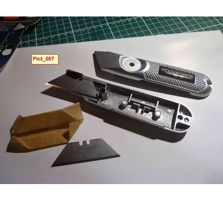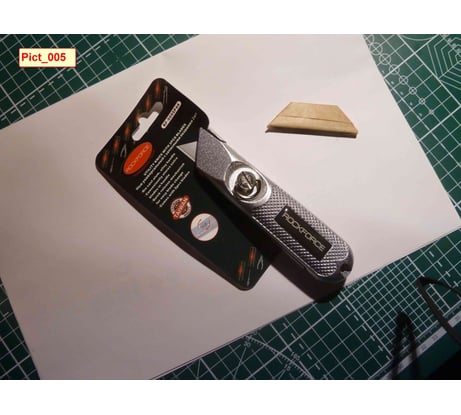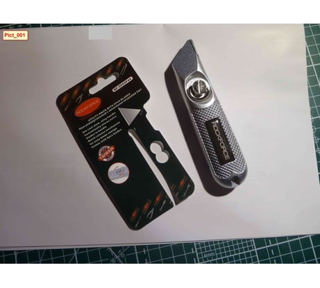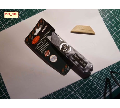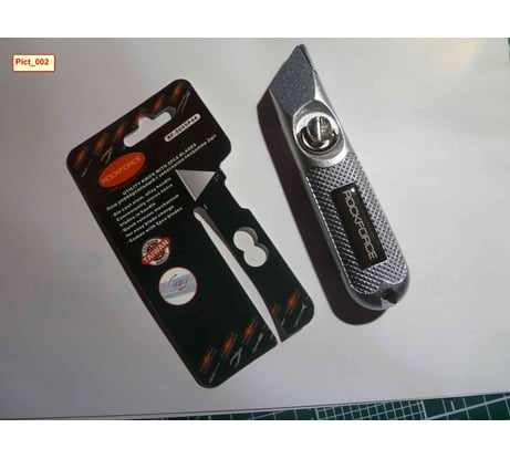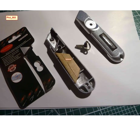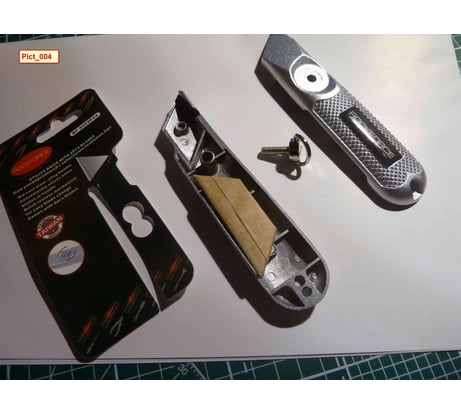 И так, что же тут нам предложено в качестве «технического ножа»... … на первый взгляд — ну что тут может пойти не так, - всё же элементарно... однако, - хочется заорать! - а что, так можно было? Точно? И сертификатик есть? Наверняка он есть — мы же очень правильные, без сертификатика никак не можем... - предназначен для хозяйственного и профессионального использования. __не с запасными лезвиями 2 шт. - а всего два лезвия, засунутые внутрь этой держалки... - Особенности: Корпус: Прочный и надежный, изготовлен из нержавеющей стали. __ корпус изготовлен из голимого силумина, какая сталь?? - Применение: Подходит для работы с материалами большой толщины, такими как ... __ Нет, не подходит – Функциональность: Идеален для отделочных работ, домашнего хозяйства, а также для рукоделия и творчества. __Если есть желание убиться, распоров себе всё что можно — да, нож идеален! Лучше не придумаешь... -- Заменяемость: Лезвия легко заменяются, что позволяет вернуть ножу остроту и продлить срок его службы. __ Лезвия заменяются с большим трудом и в течение минуты-двух, никак не меньше, опять же с риском распороть себе руки — ну, такая конструкция, уж извините... -- Беларусь — родина бренда Казалось бы, всё должно быть хорошо, но... нет... Китай — страна производства... ...понятно, что ничего хорошего ждать и не приходилось... - И хто ж это сдееелал? Вот, любуйтесь — красота! (PICT_005) И ничего, что лезвие, какбэ вытарчивающее из ножа — это просто картинка на бумажке? :) А лезвие-то можно было пририсовать, оказывается, ! Круто! И два запасных — настоящих, унутре держалки-корпуса! (PICT_002) Требую Ещё два запасных! - нарисованных, а то бумажка-то может и потеряться... (PICT_004) — вот он какбэ — весь набор удовольствий! Не перепутайте, а то — ишь, лезвий ему мало... … Короче говоря — чтобы привести это нож в условно рабочее (и крайне небезопасное) положение, надо: открутить крепёжный винт, аккуратненько достать одно из двух лезвий, ещё более аккуратненько водрузить это лезвие в ложе для него (это не так уж запросто — ложе подогнано так себе), закрутить крепёжный винт... всё! Можете рэзать! Пока рэжете, можете заодно подумать, что дальше с ним делать... ну, после того как порэжэте... нож-убийца так и останется с торчащей наружу бритвой? Или всё-таки мы не поленимся, и заново разберём-раскрутим эту чудо конструкцию (минута-две всего-то и надо) и вытащим-уберём лезвие обратно унуть — на хранение, тксзть... мало ли, вдруг потом как-нибудь ещё пригодится, вот и пускай полежит ещё, понадобится — опять разберём-соберём-разберём-соберём, сказано же — ужасно удобный для домашнего и профессионального использования, а также полезен, если вы не знаете чем себя занять, вот и помайтесь дурью, покрутите чудо-нож (только, аккуратно, не убейтесь по ходу.... :)