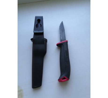 Дополняю прежний отзыв, спустя 4 года эксплуатации. За всё время правил от силы пару раз. Применение: режу веревки, скотч, картон, ветки, колбасу, хлеб, подстрогать доску, снять кору, отколупать прибитые скрепки, сбор грибов... В ножнах держится до сих пор.
