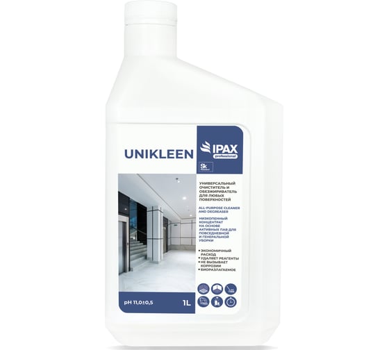Универсальный очиститель и обезжириватель IPAX Unikleen 1 л UK-1-2655 - профессиональное чистящее средство - универсальный очиститель и обезжириватель для любых водостойких поверхностей.