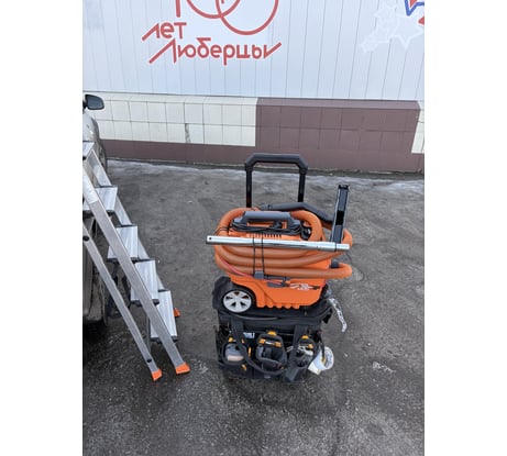 Компоновка удобнее чем цилиндр. Корзина сзади для инструмента удобна, колеса резиновые сзади. Однозначно плюс – это шланг 4 метра и провод 5 метров, меньше дергаешь его и дотягивается и по потолку и стенам куда надо. Всасывает хорошо, не могу сравнит с домашним, обе они тянут здорово, но это за счет большого бкак и мешка не нужно чистить постоянно.