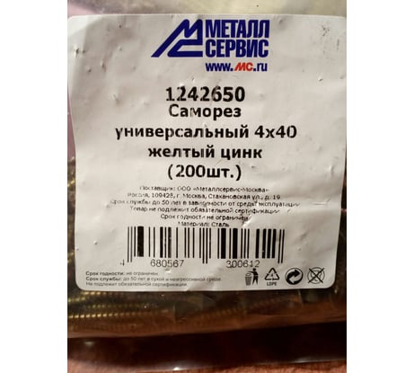 Отзывы об универсальном саморезе МЕТАЛЛСЕРВИС 4x40 желтый цинк 200 1242650