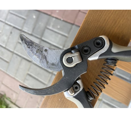 На одном из двух таких секаторов потерялась возвратная пружина из-за того, что фиксирующий её упор оторвался (похоже, что изначально он приклеевается).