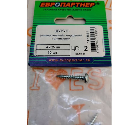 Вопросы и ответы о шурупе ЕВРОПАРТНЕР с п.кр. гол. zn 4x25 10 14 1189 1