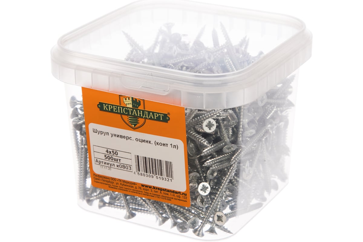 Универсальный шуруп Крепстандарт оцинк. 4х50 500шт конт. 1л к0803