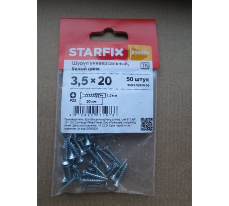 Вопросы и ответы об универсальном шурупе STARFIX 3,5x20 мм, 50 шт. белый цинк SMZ1-52600-50