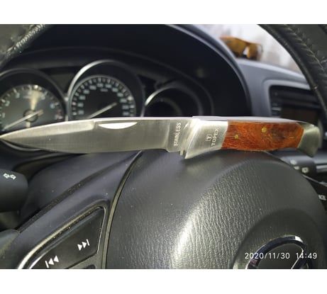 Неплохой складной нож , лежит всё время в бардачке авто.