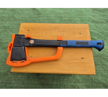 С учетом его цены вполне хороший топор. При первом знакомстве показалась странной краска на топоре (на fiskars совсем иначе сделано), как эмаль, при работе она стирается и сколов краски нет. Топор напоминает топоры gardena, но линза выполнена несколько иначе. Топор ровный, были небольшие следы облоя в месте стыковки головы с топорищем, на обухе небольшой участок покраса со вспучиванием или неровным основанием, заточен вполне нормально (в сырое и сухое дерево нормально входит).