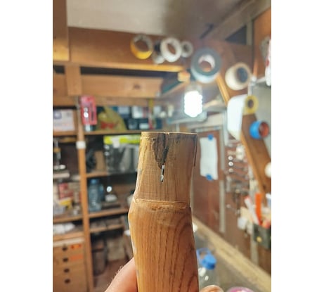 Топор мне не понравился. При первой рубки начал болтаться. К концу рубки клинья просели, металлическая часть на топорище начала ощутимо сдвигаться вперед. Разобрал в мастерской - клинья вбиты плохо.