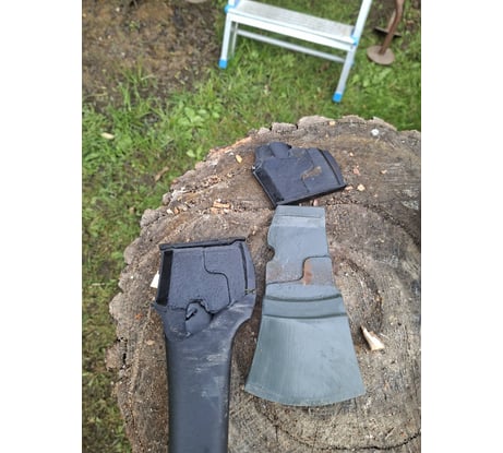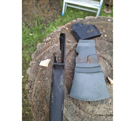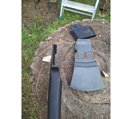 Ну вообщем колоть им небольшие полешки для растопки печи, мангала самое оно, колит в щепки на ура. Но стоило попробовать разрубить рёбрышки молодого барашка как остриё топора реально погнулись, один кусочек выкрошился. Сталью там и не пахло, какой то сплав силумина и пластилина видимо.
