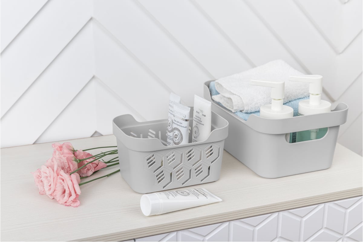 Универсальный ящик Econova Luxe с крышкой, 270х190х120 мм, 4,6 л светло-серый 433205430