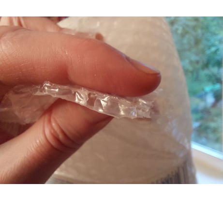 Неплохая пленка.Действительно двойная, т.е. воздушные пузыри покрывают листом пленки с двух сторон. Ей можно заматывать предметы любой стороной. Довольно прочная.