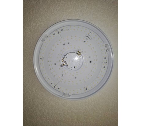 Плафон светильника сделан из тонкого пластика, он легко царапается, поэтому обращаться с ним надо аккуратно. Однако, выглядит он все же достаточно стильно и внешне очень похож на стекло. При этом за счёт пластикового плафона весь светильник получился очень лёгкий. Световой поток регулируется по температуре - от теплого (жёлтого) до холодного (белого с синевой) и яркости. На максимальной яркости светит очень сильно, обычно выставляем яркость на 4-5 уровней ниже максимума. Режим ночника оказался слишком яркий, ожидали намного более приглушённое освещение. Как ночник использовать не вариант. Основной несущий корпус металлический, достаточно жёсткий. Крепится на три небольших шурупа с дюбелями (идут в комплекте). Устройство светодиодной группы видно на фото. На вид сделано все добротно. Если выключить светильник просто с пульта, то он продолжает немного светиться. Это видно только в темноте, но свечение очень тусклое и особо не мешает - его просто видно. Если же выключать обычным выключателем (при условии, что он, как полагается, разрывает фазу) то таких проблем нет, всё гаснет полностью. Светильник запоминает выставленный режим освещения, однако если выключить его выключателем и тут же включить обратно, то настройка сбрасывается на свой режим по умолчанию. Приходится снова выставлять нужное освещение. Изначально светильник стоил около 5000, на такие деньги субъективно говоря не тянет. А вот за полцены самое то.