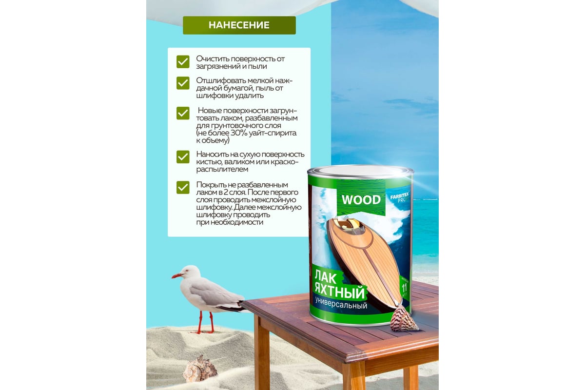 Высокопрочный атмосферостойкий лак универсального применения. Оптимален для защиты и декоративной отделки деревянных лодок, яхт, садовой мебели и других изделий из древесины (в т.ч. для оконных рам и дверей). Поставляется в 2 видах покрытия: высокоглянцевый и матовый.