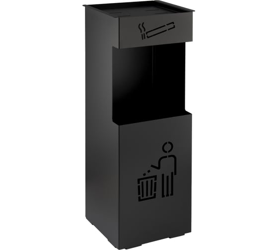 Урна с пепельницей квадратная, из углеродистой стали, цвет чёрный.