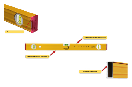 - Продуманная конструкция Резиновые колпачки с упорами защищают уровень и не дают ему скользить – незаменимо при работе с плиткой и стеклом