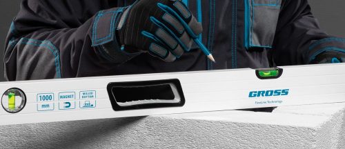 Уровень алюминиевый, 1000 мм усиленный, рукоятки, фрезерованный, 3 глазка, магнитный GROSS 34372 используется в строительстве и ремонте для проверки горизонтальных и вертикальных поверхностей. Конструкцией предусмотрено наличие рукояток и обрезиненных торцевых заглушек. Погрешность, благодаря фрезерованной поверхности, сведена к минимуму и составляет 0,5 мм/м. Встроенные магниты позволяют фиксировать инструмент на стальных поверхностях.