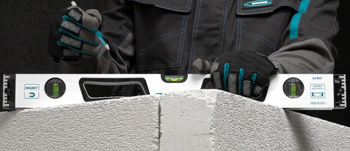 Уровень алюминиевый, 600 мм усиленный, рукоятки, фрезерованный, 3 глазка, магнитный GROSS 34370 — измерительный инструмент для выявления отклонений поверхности по вертикали и горизонтали для последующего выравнивания. Точность составляет 0,5 мм/м. Для уменьшения погрешности поверхность уровня фрезерована. Изделие отличается прочностью и износоустойчивостью. Торцевые обрезиненные заглушки предотвращают повреждение инструмента при случайном падении. Уровень удобно фиксировать на стальных поверхностях, чему способствует наличие встроенных магнитов.
