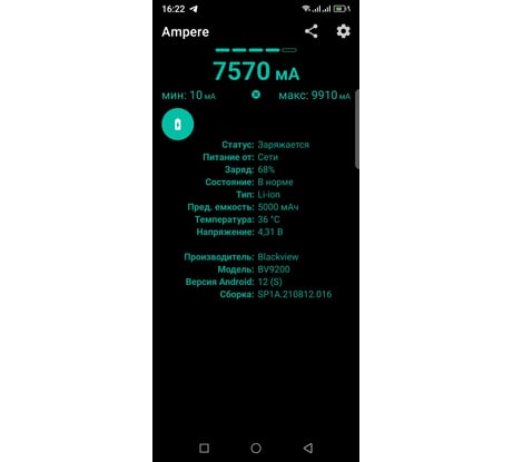 Хороший кабель для быстрой зарядки и передачи данных. С GaN зарядкой 60w, (телефон на МТК), выдаёт почти 10 амер.