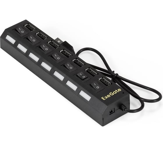 USB-Хаб ExeGate концентратор 7-в-1 DUB-72SW кабель-адаптер USB2.0 -- 7xUSB2.0, кнопки включения/отключения для каждого порта, Plug Play, черный 293978