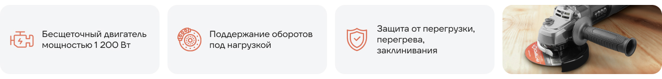 - Поддержание постоянных оборотов под нагрузкой (Константная электроника): Независимо от прилагаемого усилия (резка плотного материала или шлифовка), электроника автоматически поддерживает заданную скорость вращения диска Это гарантирует стабильно высокое качество обработки материала и защищает двигатель от перегрузок