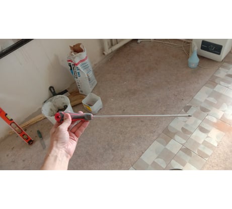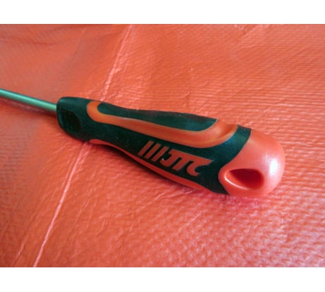 Неплохая отвертка с длинным жалом, удобная ручка.