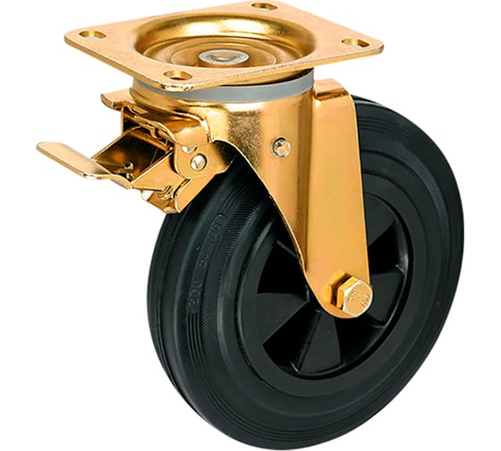 Усиленная поворотная колесная опора Kolesa-opori SCMb 80 с тормозом, черная резина, д200 SCmb80